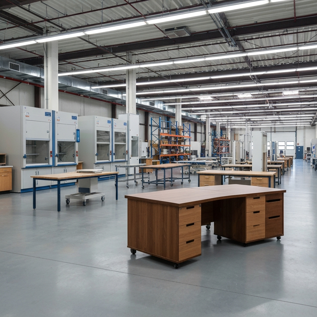 We serve healthcare (hospital beds, medical trolleys), laboratory (all types of fume hoods), industrial (warehouse racks, workbenches), HVAC (complete turnkey systems), and commercial sectors (office furniture). Our multi-industry expertise covers all manufacturing needs.